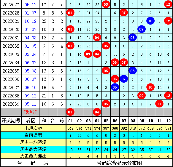 上期开奖:体彩大乐透第2022039期奖号为01 08 11 22 31 + 05 11,前区三区比为3:1:1,奇偶比为3:2,和值为73,012路比为0:3:2。