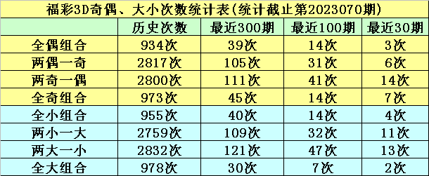在前10期开奖中,全大组合出现1次,全小组合出现1次,两小一大组合出现5次,两大一小组合出现3次,本期预计开出两大一小组合。