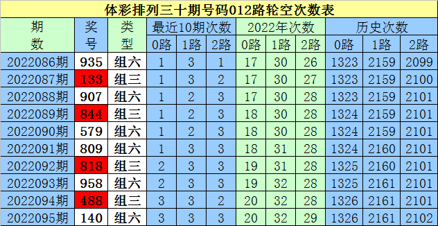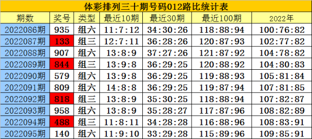 开奖回顾:排列三第2022095期奖号为:140,号码012路比为1:2:0。