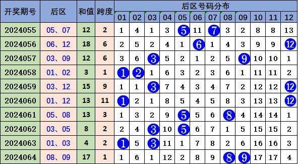 最近5期后区号码奇偶比为7:3,本期推荐关注:04、10。