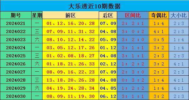 大小比分析:上期前区奖号大小比为2:3,最近10期前区大小比为24:26,大号较冷,本期参考大小比2:3。