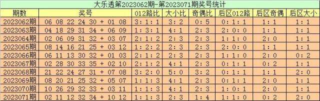 大乐透第2023072期奖号012路分析: