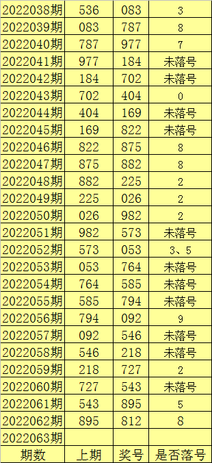 福彩3D第2022062奖号812,重号落号。在最近100期(第2021314期-2022062期)中,重号落号51期;最近20期重号落号概率为55%;最近10期重号落号概率为40%。本期预计重号可能落号。