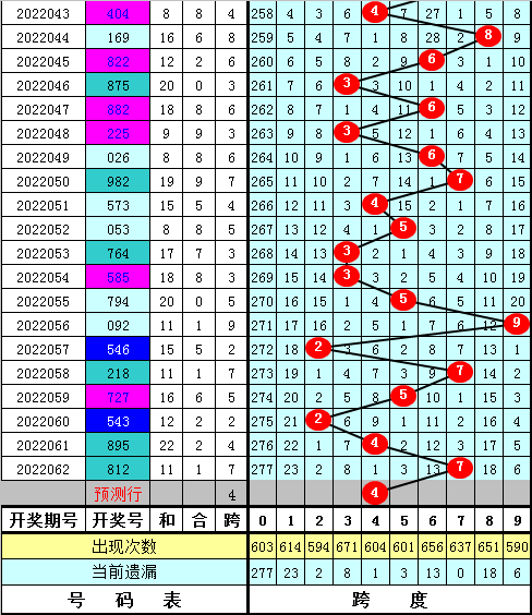 福彩3D第2022062期最大跨度开出7,近期最大跨度波动较大,本期预计最大跨度在1-5区段出现,最大跨度关注12345,重点关注跨度4。