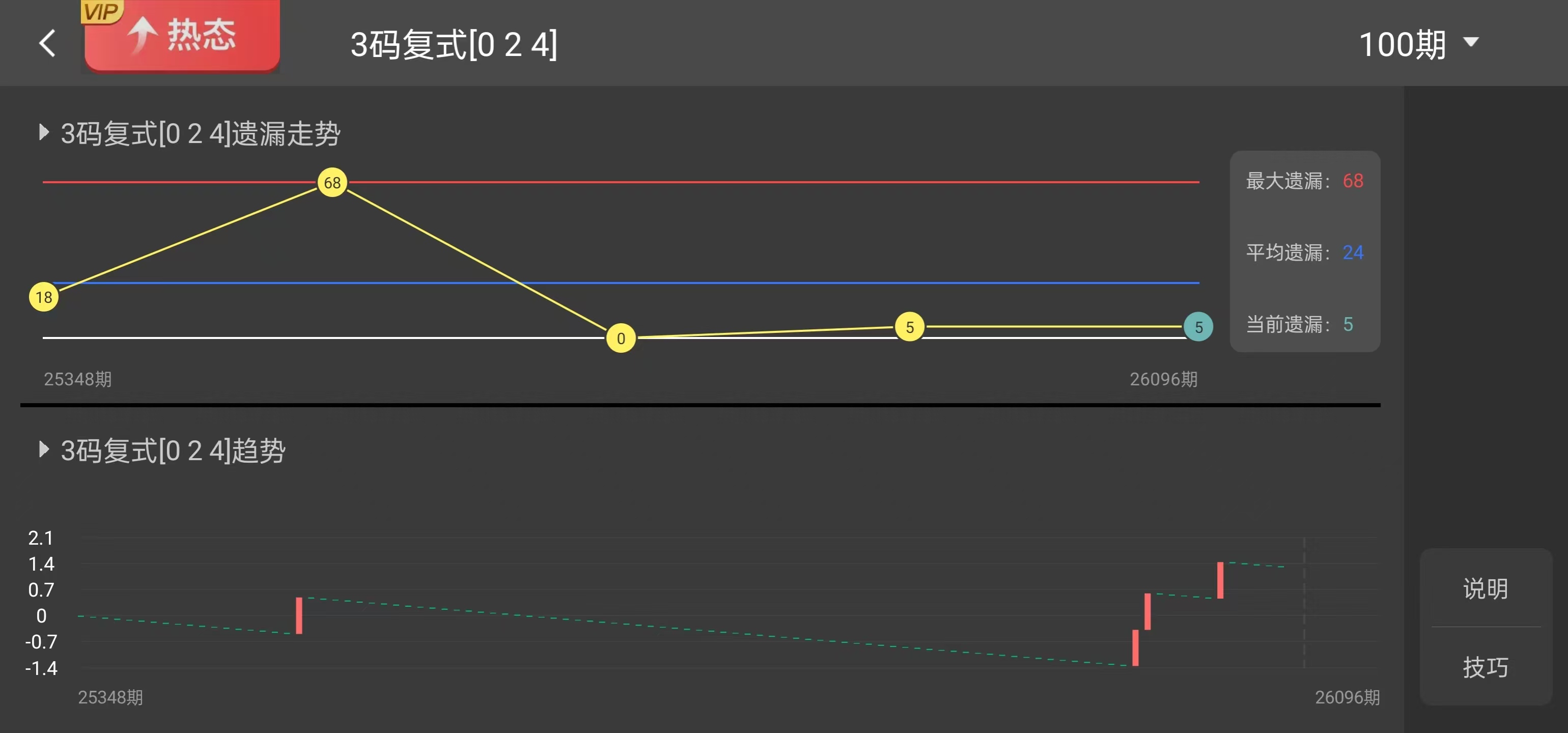 跨度走向近 9 期跨度集中在 1-6 区间,连续两期开出中低跨度,偏离近 9 期跨度均值,下期跨度大概率呈现向中高跨度区间回升的走向,低跨度延续的概率偏低,整体向 4-6 的中跨度区间靠拢。