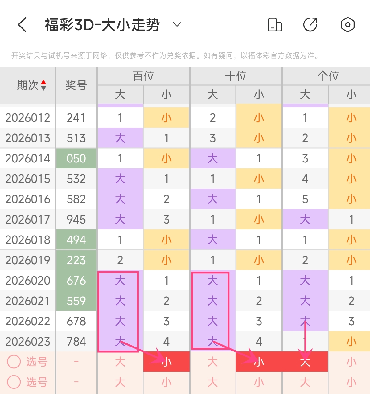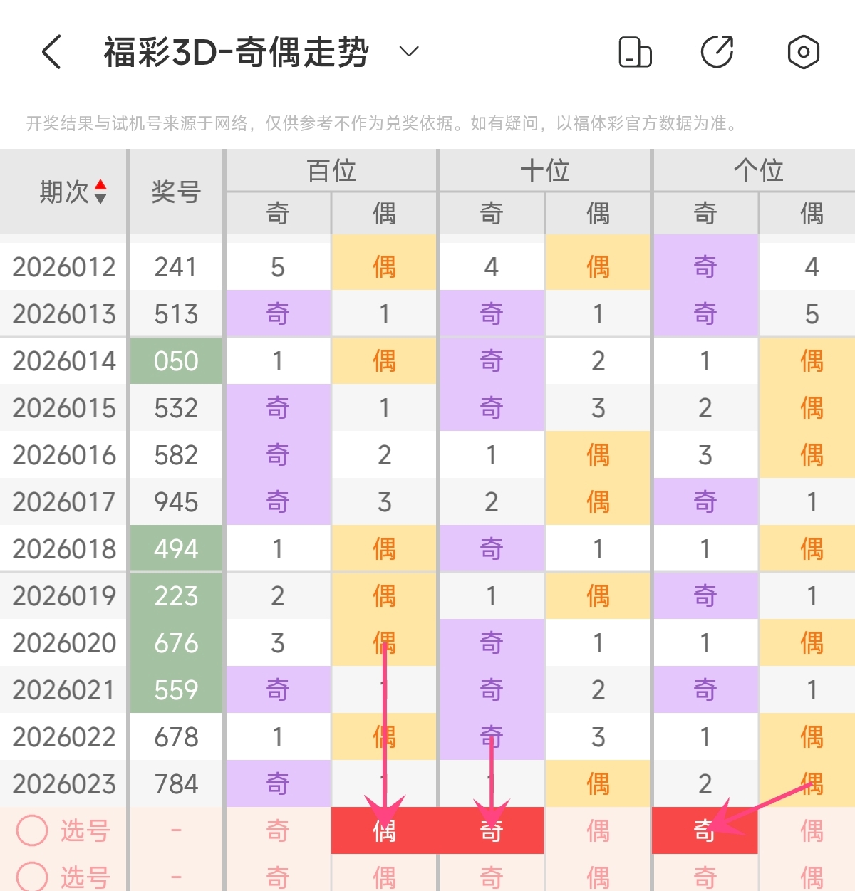 首先让我们回顾一下上期福彩3D第2026023期开奖号码为784 ,为组六形态,大小比为2:1,奇偶比为1:2,跨度为4,和值为19。