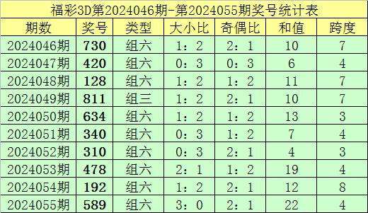 上期回顾:福彩3D第2024055期奖号:589。