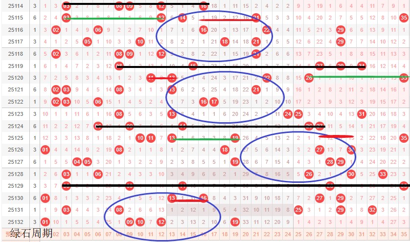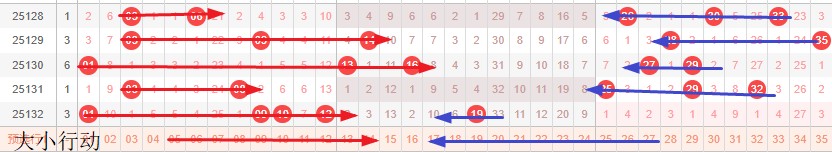 如图所示:体现的是3个局部走势的发展周期,圆圈为密集处的填空,本期定性为新局部走势第5期,架构填空第2期,主力填空第3期,蛋跨预估17-27,真实空间在2区17-27,走势最后一期顺势把号码填在蛋跨右半区12-19,关键看3区开几枚,右推和拉伸3区就具备开出号码,压缩本期再断3区。