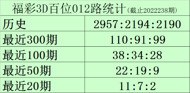 百位推荐:百位最近20期号码012路比为11:7:2,目前0路号码遗漏1期,1路号码遗漏0期,2路号码遗漏15期,另外0-9号码遗漏期数分别为: