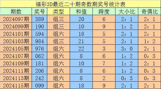 跨度分析:最近5期奖号跨度出现在2-9区段,波动了8个点位,分布较散,上期跨度为7,下降2点,本期看好考跨度上升,预计出现8。