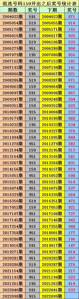 排列三组选159出现之后下期分别开出:871、014、165、925、533、808、856、181、141、921、671、466、867、204、622、232、088、534、376、844、382、213、581、831、079、598、614、637、564、475、921、727、942、948、177、106、147、014、257、276、217、523、414、533。
