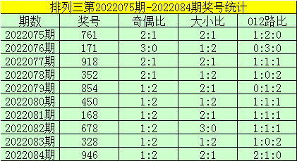 其奖号特点为:大小比2:1,奇偶比为2:1,号码012路为1:1:1。