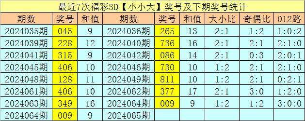 开奖回顾:福彩3D第2024064期奖号为009。奖号为:组三,大小比为1:2,大小类型为:小小大。
