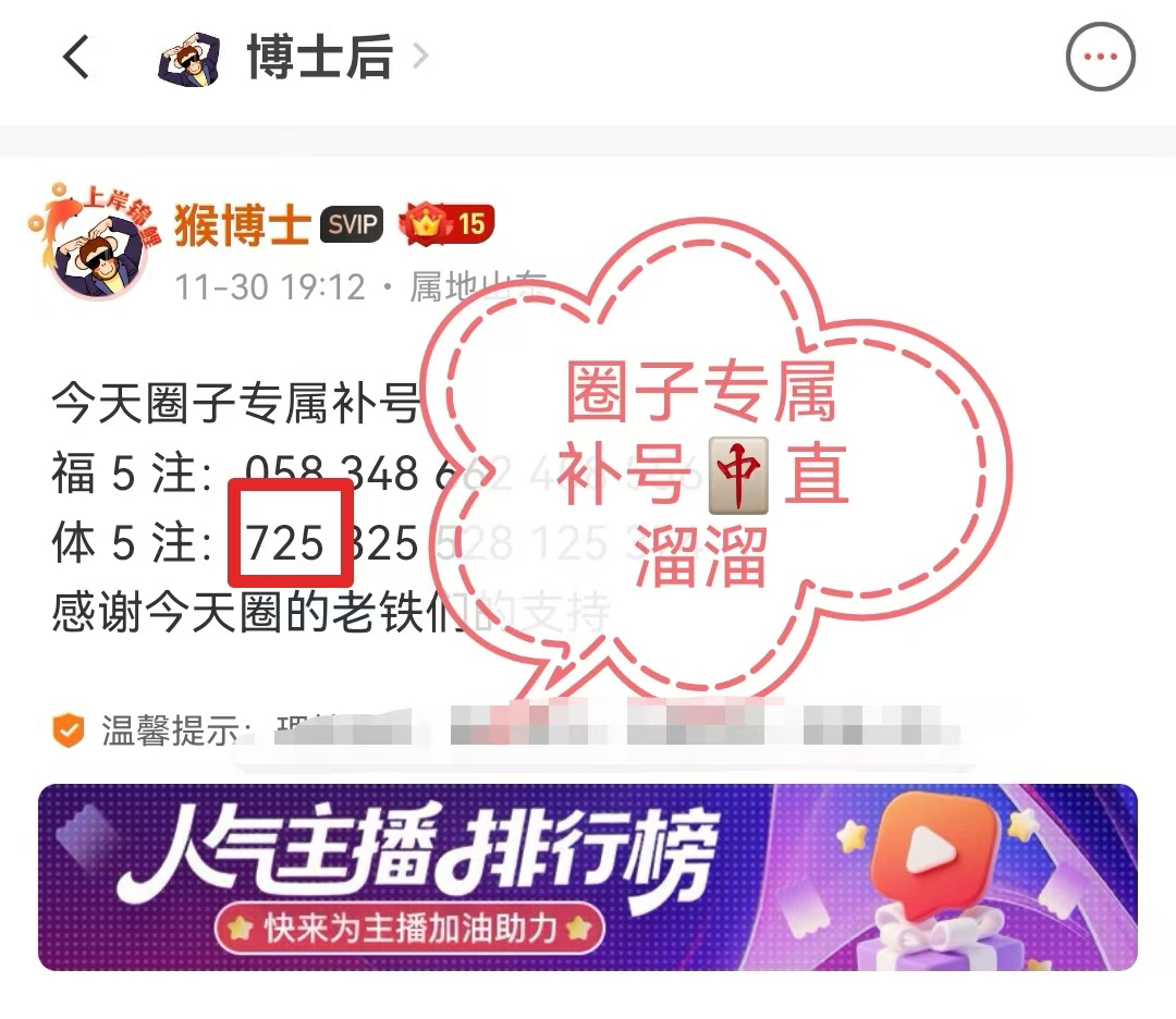 近期圈子专属补号连续两期命中直溜溜,还没进圈的老铁们马上进圈喽