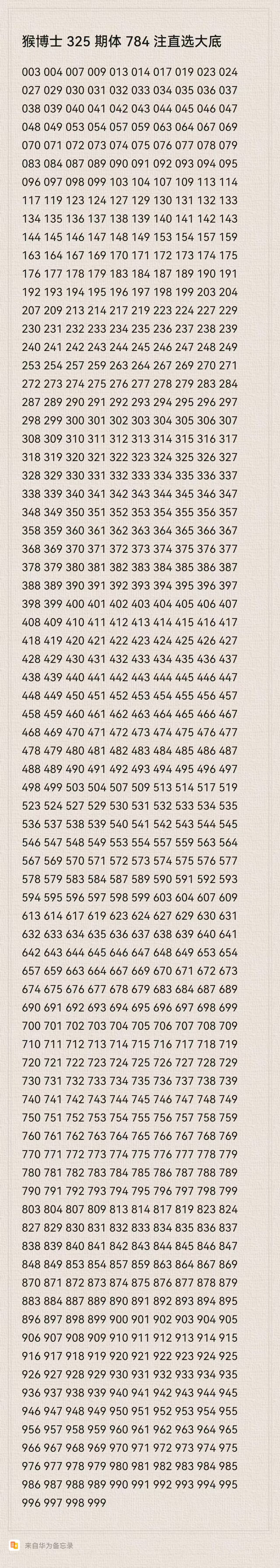 猴博士325期排列三784注直选大底:(可以当母底用,然后进行缩水)