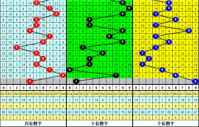 其中,号码0-9开出次数分别为:号码0开出1次、1开出2次、2开出3次、3开出6次、4开出2次、5开出5次、6开出4次、7开出3次、8开出3次、9开出1次。