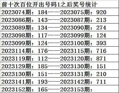 二、百位分析:上期开出号码1,前10次号码1出现之后下期分别开出号码:9221378127,其中号码大小比为4:6,基本持平;奇偶比为6:4,基本持平;012路比为2:4:4,0路号码表现较冷。本期参考号码:6。