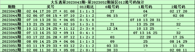 开奖回顾:体彩大乐透第23052期奖号为:02 08 11 30 33+05 08,前区奖号012路比为2:0:3,0路奖号:30、33,2路奖号:02、08、11,后区奖号为:全2路组合。