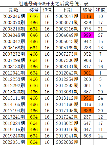 一、上期回顾:福利彩票3D第2022031期开奖结果:奖号为664,奖号和值为:16,奖号跨度为:2。