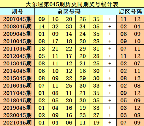 9。在历史同期奖号中,后区号码09 12出现5次;02 11出现4次;07 08出现3次;03出现2次;04 05 06 10出现1次;01历史同期没有出现。