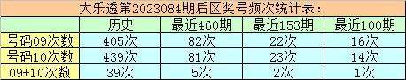 万妙仙大乐透第2023084期后区冷热号码统计: