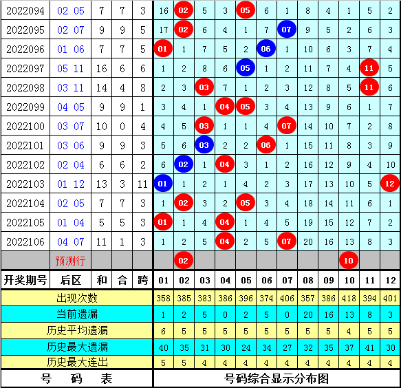 后区5码参考:02 03 06 08 10