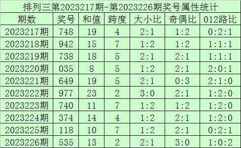 上期回顾:排列三第2023226期开奖号:535,奖号和值:13,奇偶比3:0,大小比2:1。