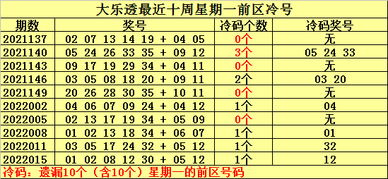 四、后区分析:在018期历史同期开奖中,后区全大组合开出1次,全小组合开出1次,一大一小组合开出13次;后区全奇组合出现4次,全偶组合出现7次,一奇一偶组合出现4次。本期后区看好大号热出,防全大开出,两码参考08、11。