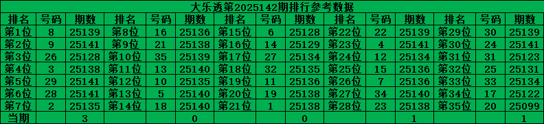 近期开出最多的位置是第32位,对应本期号码是:25号