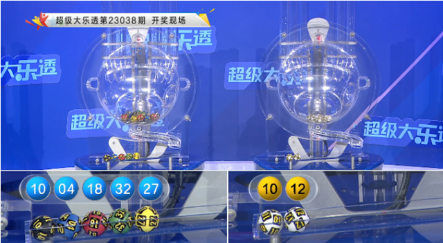 开奖回顾:体彩大乐透第23038期奖号为:04 10 18 27 32+10 12,前区奖号012路比为2:2:1,奇偶比为1:4,三区比为2:1:2,后区为全大组合。