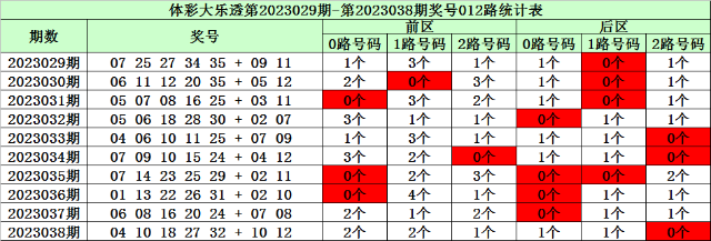 陈华大乐透第2023039期奖号012路分析: