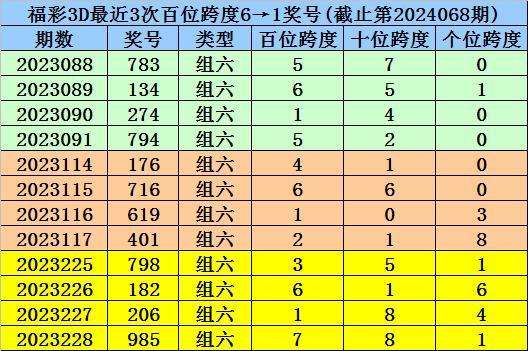 第2023225-第2023227期奖号:798、182、206,其下期奖号为:985,首位号码跨度为7;