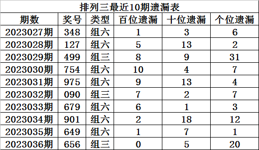 上期回顾:排列三第2023036期奖号:656,组三,直选遗漏总值为25期。
