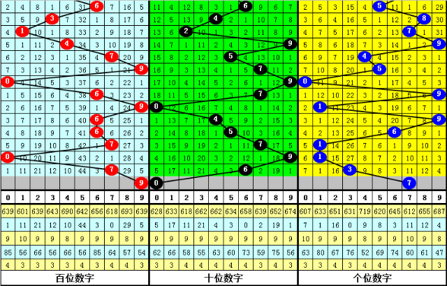 0路号码上期开出2个,近10期共出现16个表现相对活跃,其中0开出4个、3开出1个、6开出5个、9开出6个,本期应注意0路号码回补,参考号码0、9。