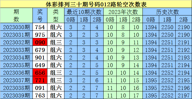 开奖回顾:排列三第2023039期奖号为:763,号码012路比为2:1:0。