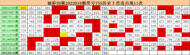 上期回顾:福彩3D第2022018期开出奖号755。