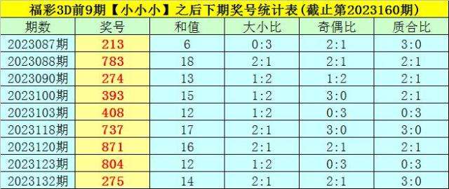 一、上期回顾:福彩3D第2023160期奖号为:422,奖号类型开出组三,大小比为0:3,奇偶比为0:3,和值为8,跨度为2,012路比为0:1:2。