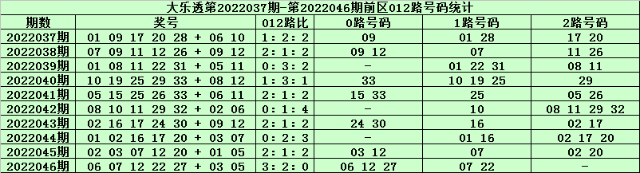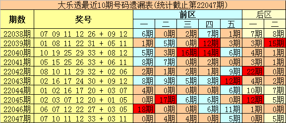 开奖回顾:大乐透第22047期奖号为:07 10 11 12 33 + 03 11,前区号码大小比为1:4,和值为73,跨度为26,奇偶比为3:2。后区和值为14。