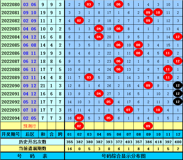 胡金第2022095期大乐透区间号码个数统计分析:(前区:01-12为一区,13-23为二区,24-35为三区;后区:01-04为一区,05-08为二区,09-12为三区)
