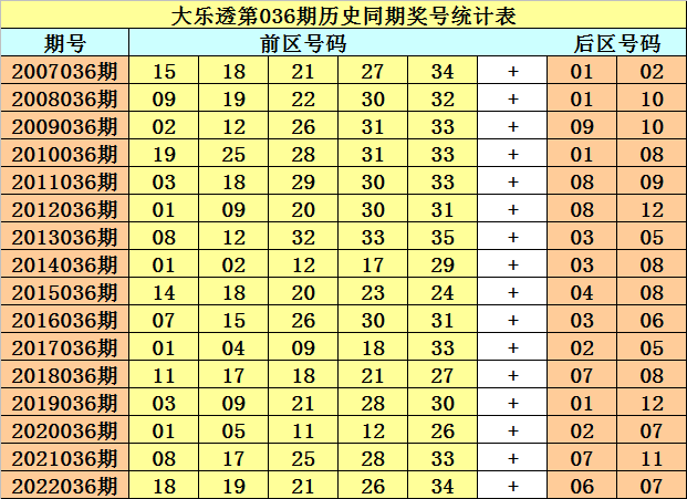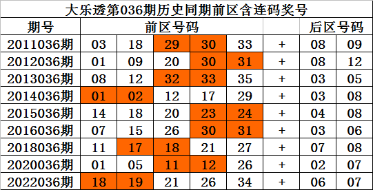 大乐透第2023036期历史同期推荐:
