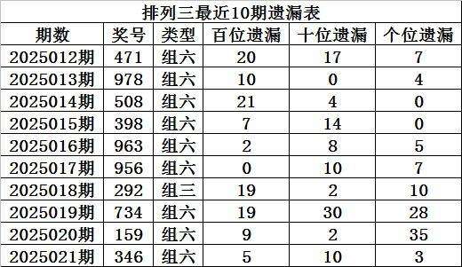 上期回顾:排列三第2025021期奖号:346,组六,直选遗漏总值为18期。