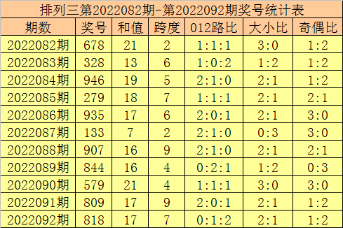 二、在最近22期开奖中,奖号:4、9、8、0,开出期数最多,本期注意这四码中落号,关注号码0;遗漏期数最多的三码奖号为:7、8、9,当期开奖一般不会全部出现冷码,本期可以排除号码7。