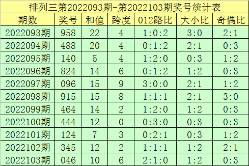 郑飞排列三第2022104期奖号参考: