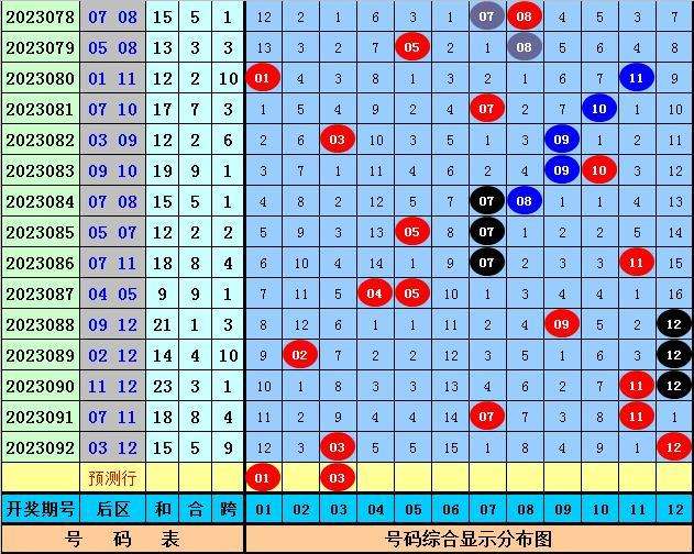 后区分析(一区01-04,二区05-08,三区09-12):上期后区开出奖号03和12,最近10期后区三区落号比为3:10:10,本期后区关注号码01、03、08、09、12,后区两码参考01、03。