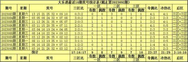 前区三区走势:上期前区奖号三区比为1:2:2,最近10期前区奖号三区比为17:16:17。