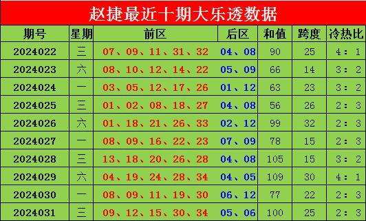 032期赵捷大乐透预测奖号:冷热比分析