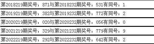 与前期历史同期奖号对比分析,在最近五年开奖中,第219期同期奖号与第232期同期奖号都出现了相同号码:
