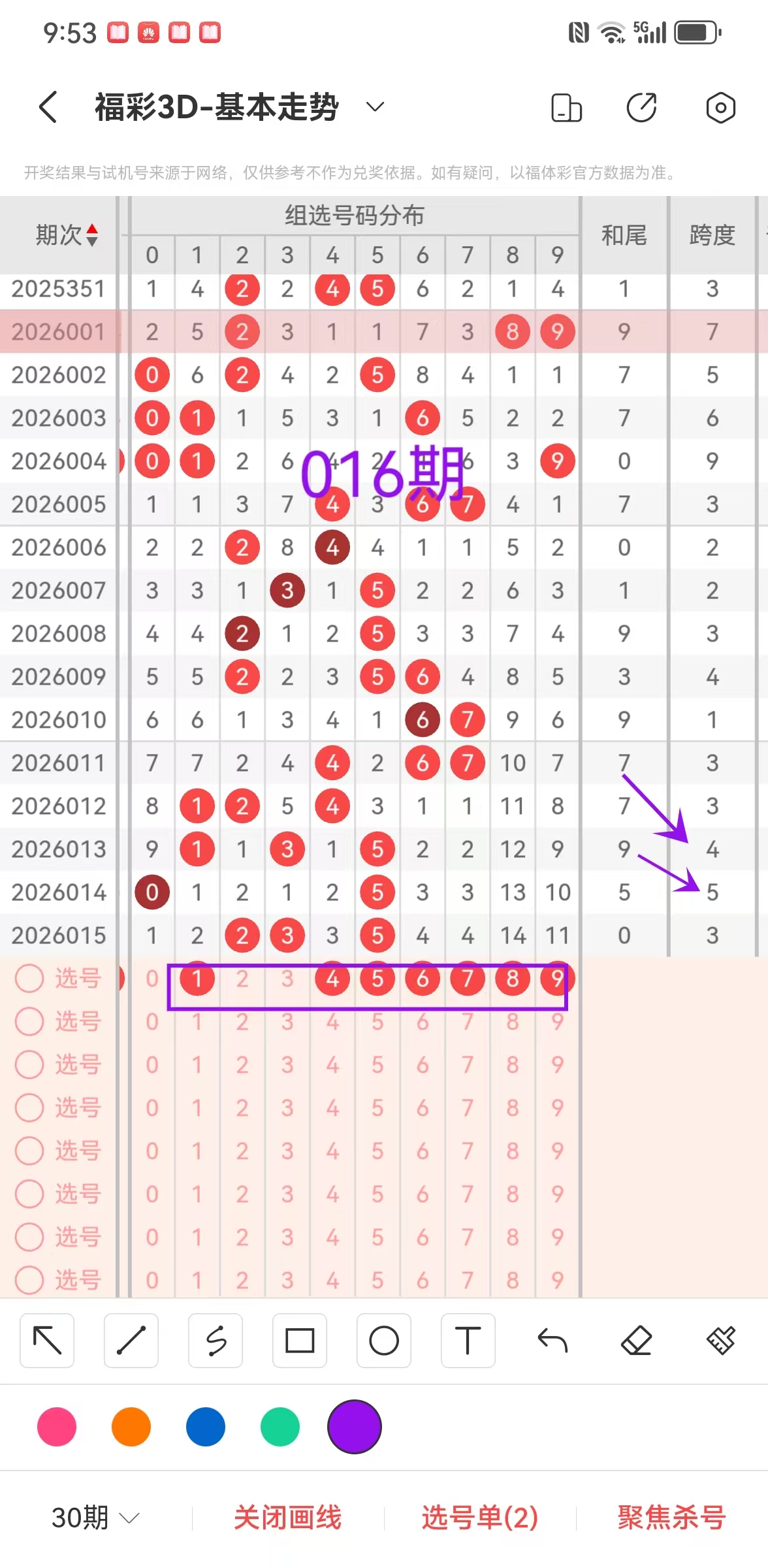 二、福彩3D2026第016期组选,尾,跨度,分析: