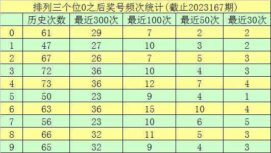 第三位杀号:第三位上期出现奖号0,该位历史上奖号0已开出了621次,最近100次第三位开出0时,下期号码0-9分别落号:号码6→15次,4→12次,8→11次,1、3、7→10次,5、9→9次,0、2→7次。