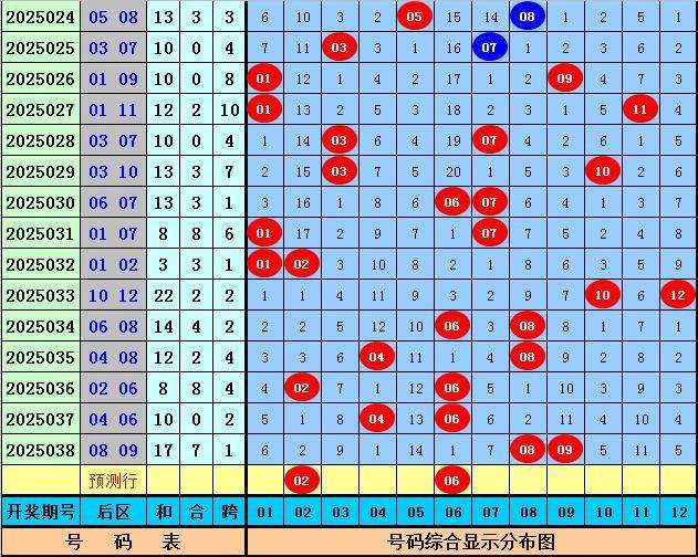 后区号码分析:上期后区开出奖号08 09,和值为17,跨度为1,本期后区参考号码02、06、08、10、12。